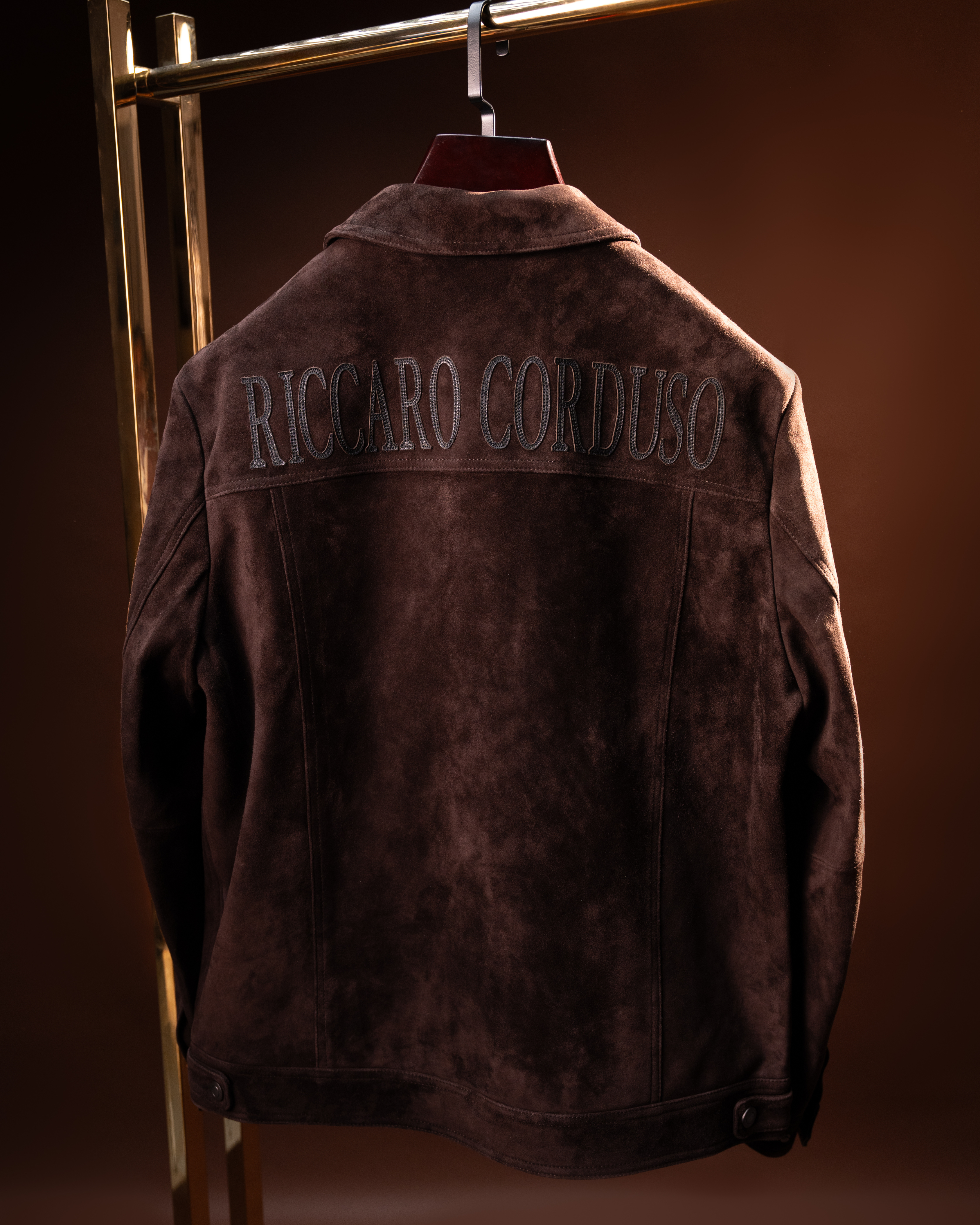 Découvrez l'incarnation de l'élégance discrète avec la veste en daim Corduso de Riccaro, une expression magistrale d'un raffinement intemporel. Confectionnée dans le daim le plus exquis au monde, provenant de tanneries artisanales triées sur le volet, ses riches nuances de brun et sa texture veloutée dégagent un luxe discret.