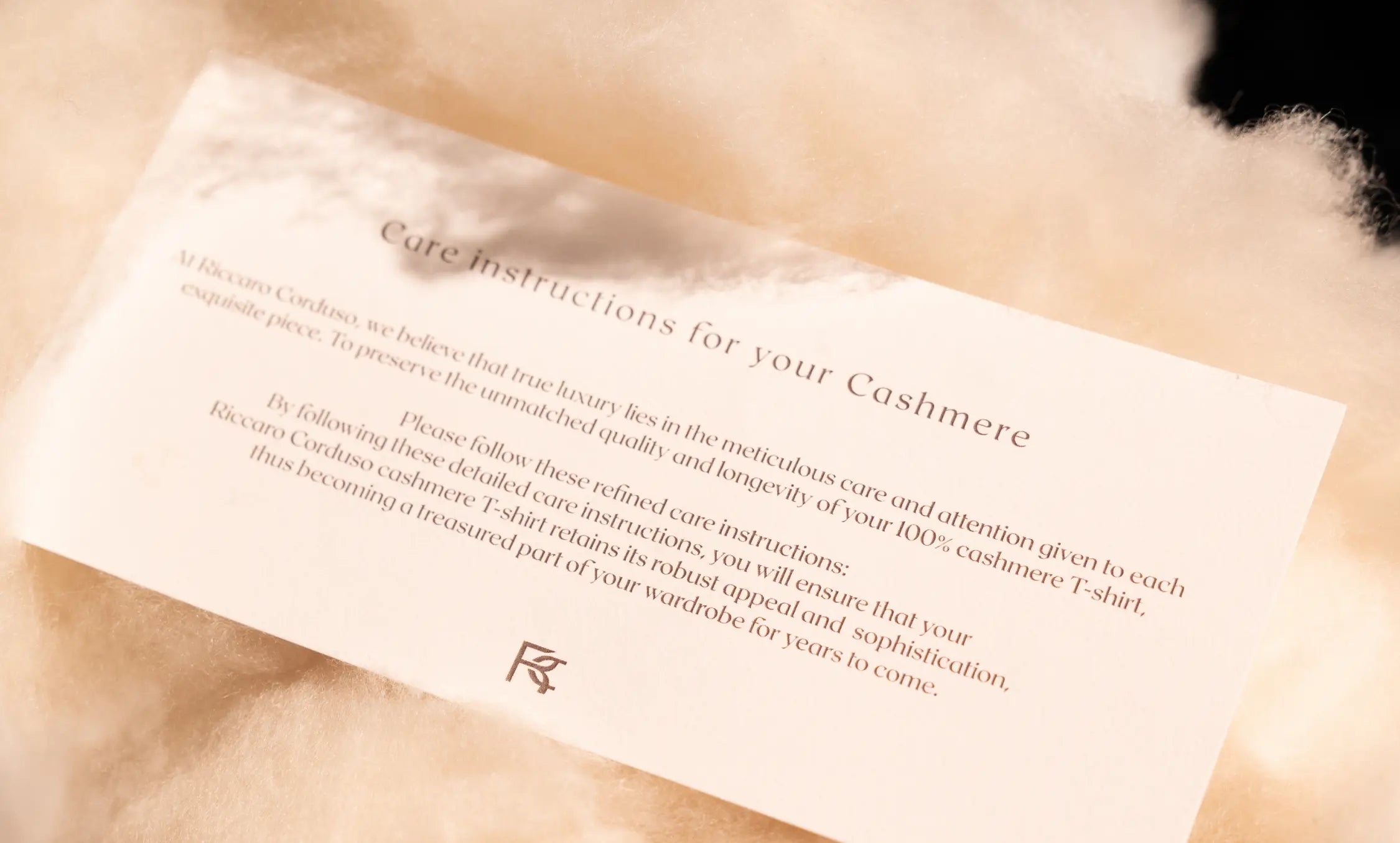 At Riccaro Corduso, we believe that true luxury is not only in the finest materials but also in the meticulous care and craftsmanship behind each piece. This image embodies our commitment to preserving the unparalleled softness and longevity of 100% cashmere, ensuring that every garment remains a cherished part of your wardrobe for years to come. Our dedication to excellence goes beyond just creating premium pieces; we guide you in maintaining their beauty. By following our refined care instructions, you can retain the elegance, warmth, and sophistication of your Riccaro Corduso cashmere, making each wear an experience in comfort and timeless style.